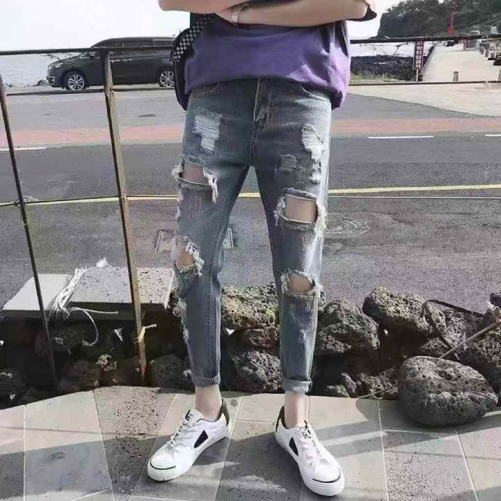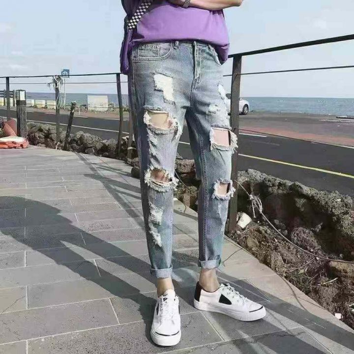 春夏季新款男士洗水棉网红破洞潮牌个性牛仔裤,独立包...