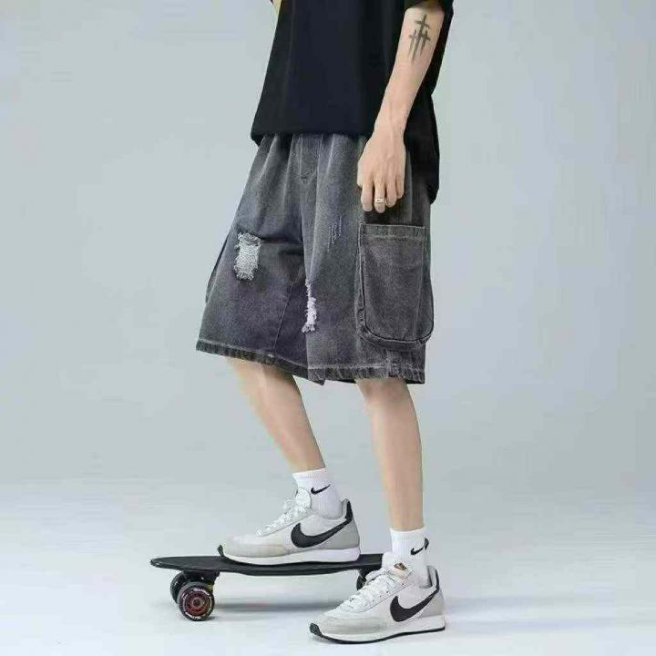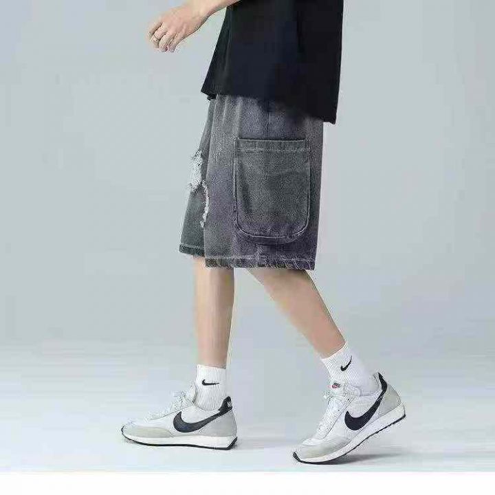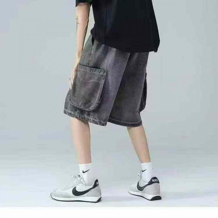 捡漏款,夏季新款松紧腰男士宽松百搭多袋洗水棉牛仔工...