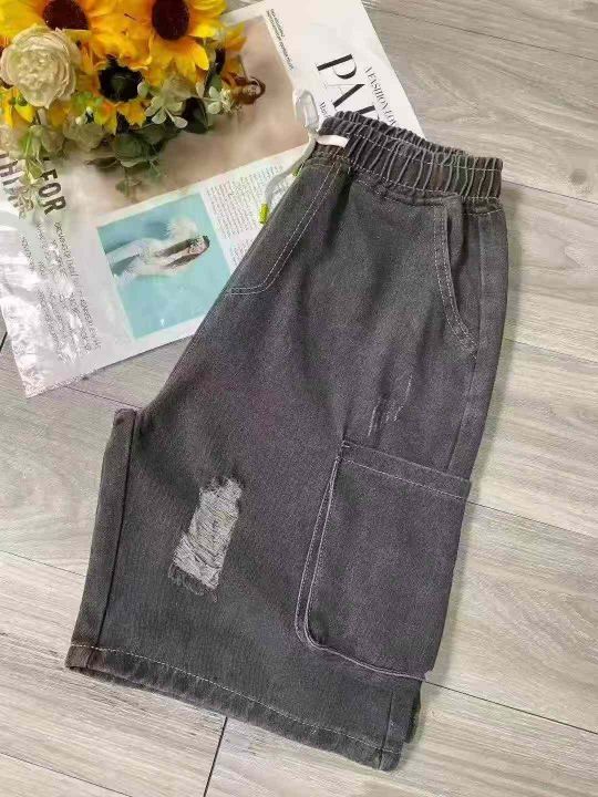 捡漏款,夏季新款松紧腰男士宽松百搭多袋洗水棉牛仔工装短裤,独立包装带腰卡,码数S- 3XL码,110件左右,全清9.9元超低价秒杀!