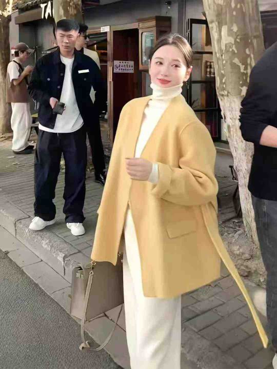 60件韩版气质绑带收腰开衫毛呢外套大衣女新款秋冬季高...