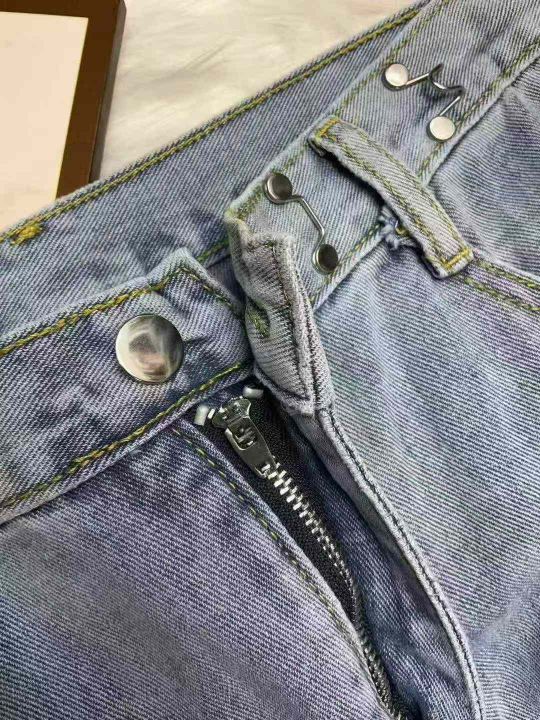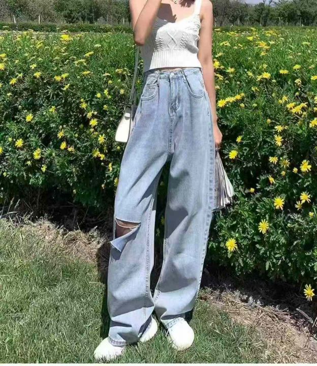 春秋新款复古网红破洞可调节直筒阔腿牛仔裤,独立包装...
