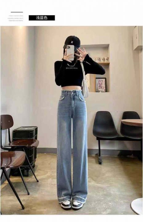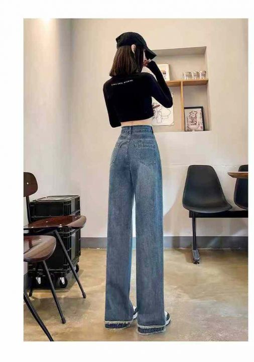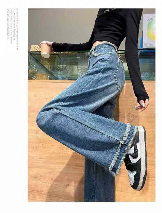 ☕️毛边直筒阔腿牛仔裤女秋冬季新款高腰毛边宽松阔腿...