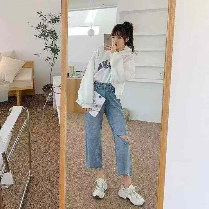春夏季新款大码女装设计款破洞牛仔裤,独立包装带吊牌...