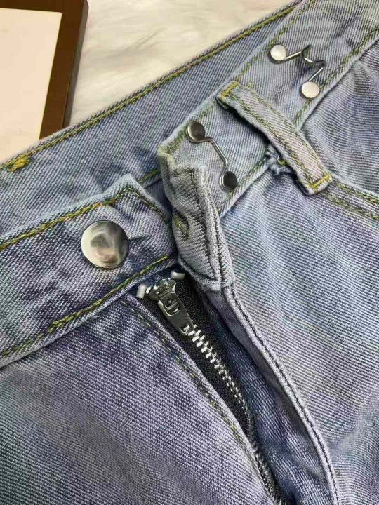 春秋新款复古网红破洞可调节直筒阔腿牛仔裤,独立包装...
