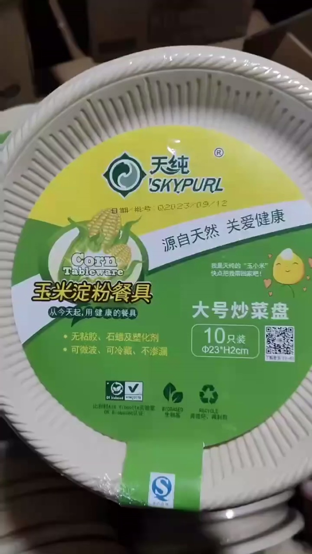环保天然材质的一次性大号炒菜盘,可放微波炉可冷藏,口径23厘米,深2厘米...