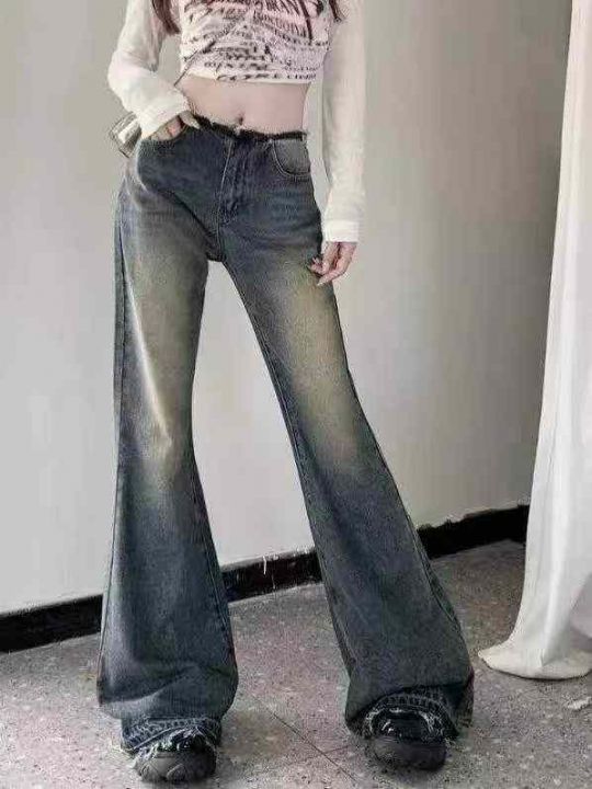 春秋新款辣妹复古阔腿喇叭牛仔裤,独立包装带吊牌,码...