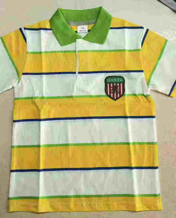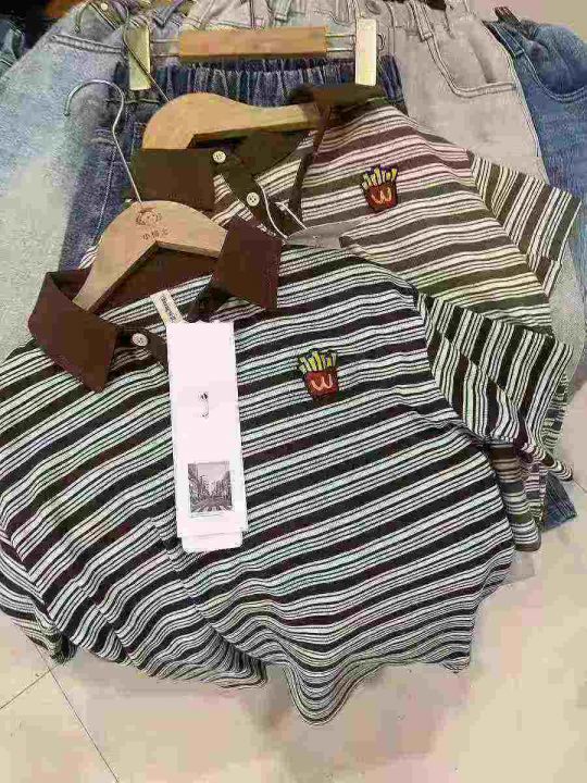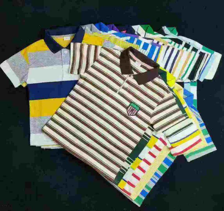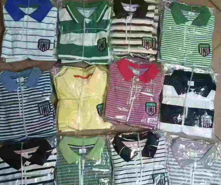 ☕️儿童翻领短袖T恤2800件全清9.8分货10.8 ,一包齐色齐码数100 110 120 130,合适3-8岁,纯棉单款一个花型条纹多颜色,童装polo翻领条纹短袖T恤。 货号:24862