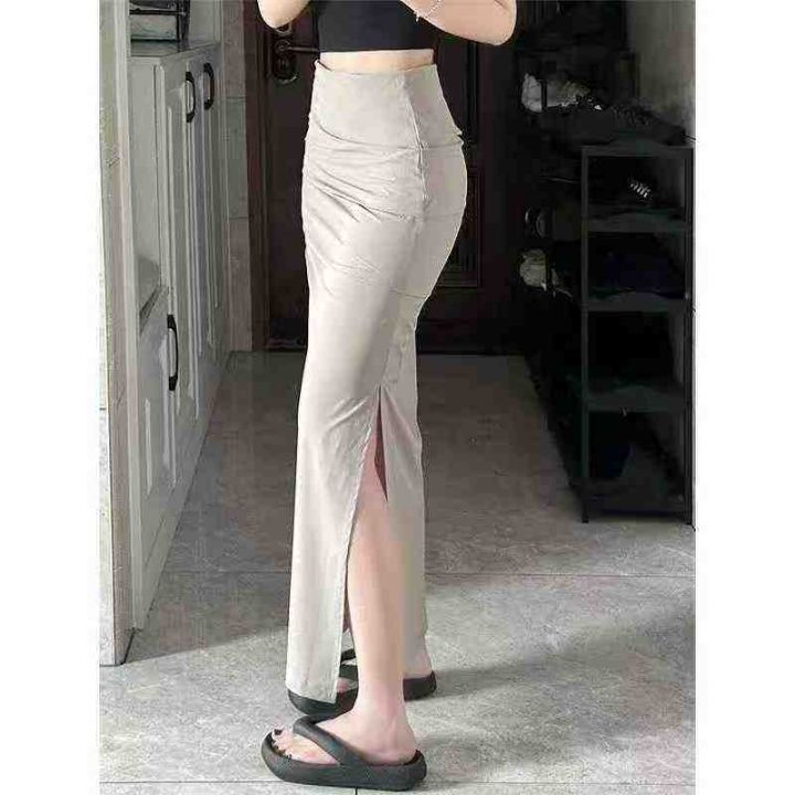 褶皱半身裙女夏季中长裙修身显瘦速干开叉半裙欧美ins...