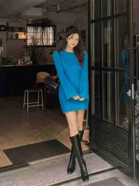2980件韩系靓妹款气质圆领长袖大版型中长款针织毛衣上...
