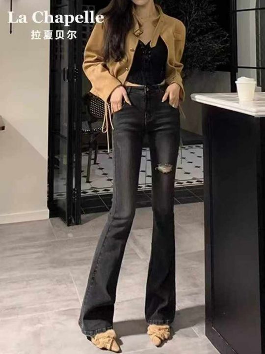 春秋新款高弹力网红复古微喇叭牛仔裤,独立包装带吊牌...