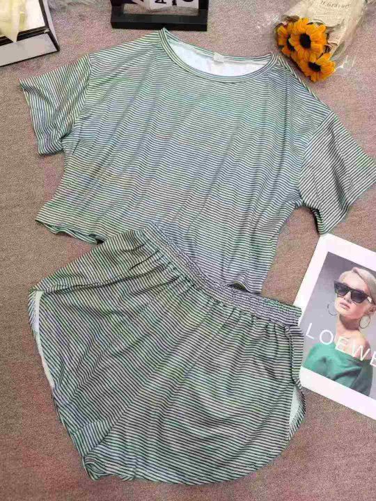 5.8清⭐305套跨境电商下架夏季条纹宽松短袖短裤家居时尚外穿睡衣套装,码数...