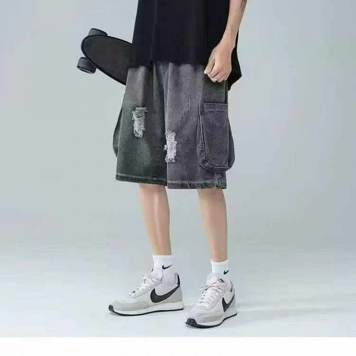 捡漏款,夏季新款松紧腰男士宽松百搭多袋洗水棉牛仔工...