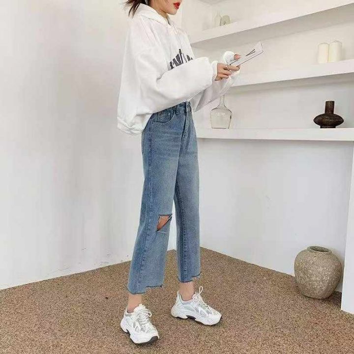 春夏季新款大码女装设计款破洞牛仔裤,独立包装带吊牌...