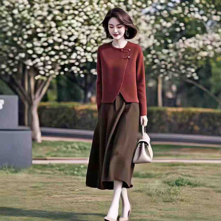 [月亮]:国风气质不规则上衣半身裙套装
