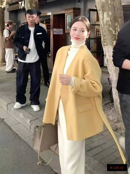 60件韩版气质绑带收腰开衫毛呢外套大衣女新款秋冬季高端宽松上衣,码数S—XL,独立包装,全清24.8分货加1@_@