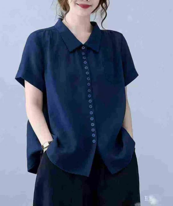 全清价6.5雪纺短袖衬衫宽松显瘦时尚翻领衬衫上衣,独立包装,码数1-3码,数...
