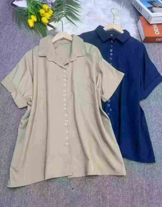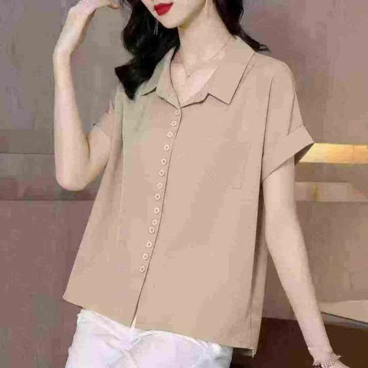 雪纺短袖衬衫宽松显瘦时尚翻领衬衫上衣,独立包装,码数1-3码,数量181件,两整款五色,货号1215#29