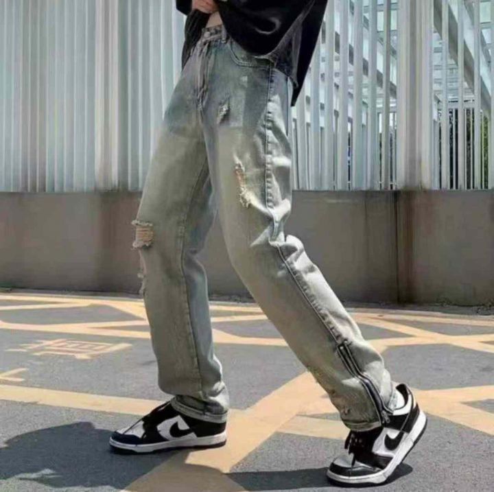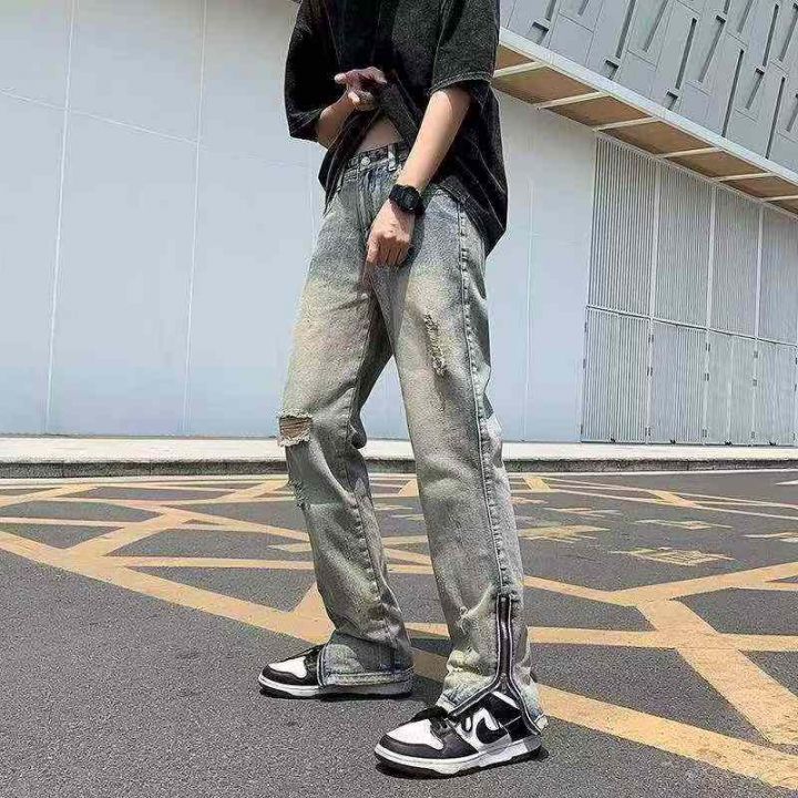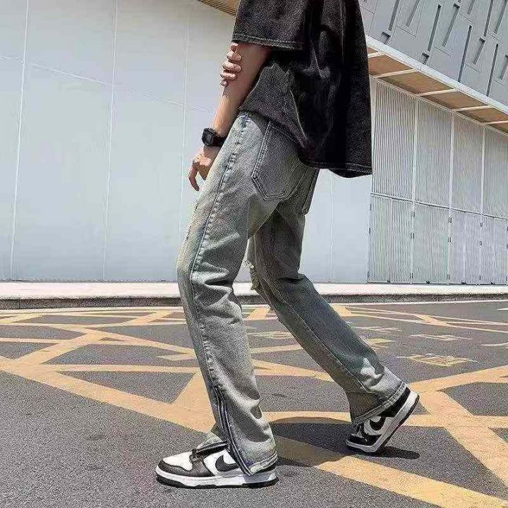 春秋新款洗水棉网红复古设计款男女同款直筒牛仔长裤,...