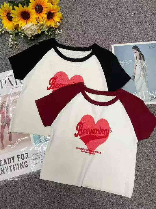夏季新款甜辣妹提花小众减龄bm别致插肩爱心字母针织短袖T桖,独立包装,均码面料柔软舒适弹力大,145件,全清5.9元超低价秒杀!