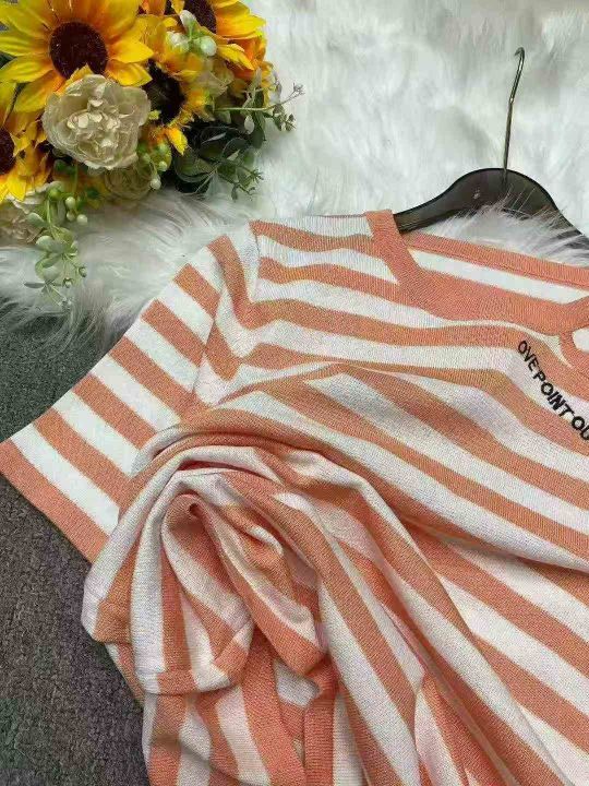 夏季新款宽松百搭撞色条纹刺绣设计款针织短袖T桖,独立包装,均码面料柔软舒适,80件左右,全清5.9元超低价秒杀!。 货号:24862