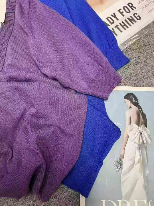 夏季新款宽松显瘦假两件冰丝针织衫,独立包装,均码面...