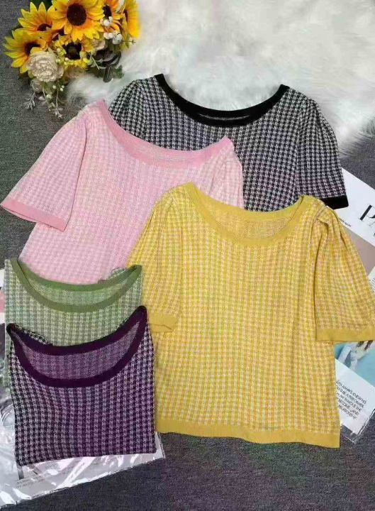 夏季新款冰丝法式独特别致质千鸟格针织短袖,独立包装,均码面料柔软舒适弹力大,410件,全清5.9元超低价秒杀!分货加一!