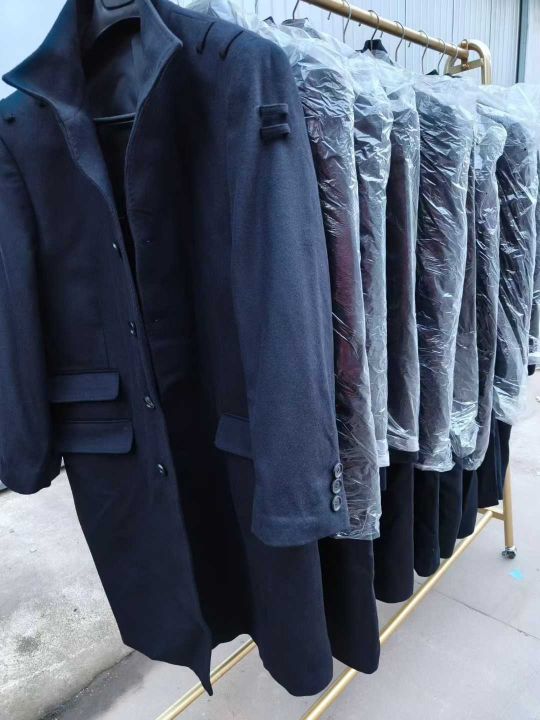 男士西服69套,单西服上衣16件,男士毛昵大衣51件,女士毛昵大衣10件,共146件,清货便宜!