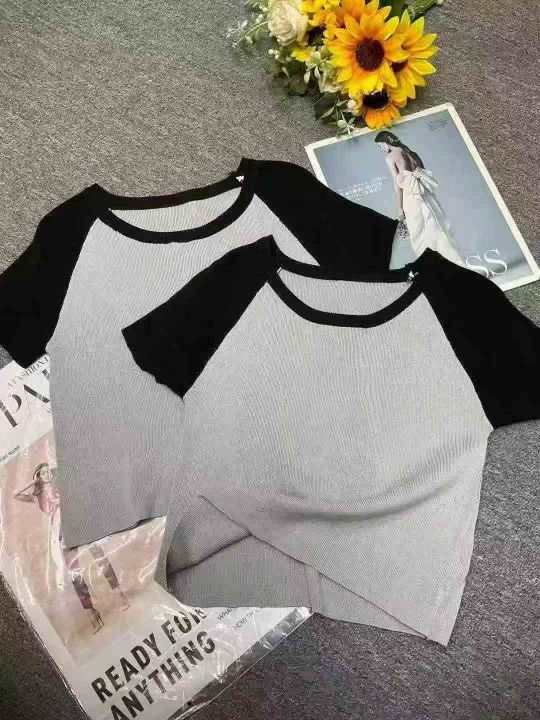 夏季新款辣妹插肩拼接撞色纯欲美式灰色针织T桖,独立包装,均码面料柔软舒适弹力大,137件,全清5.9元超低价秒杀!。 货号:24862