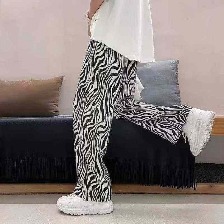 全清6.8分货+1秋冬季男女同款加绒斑马纹裤子直筒宽松百搭阔腿休闲裤拖地裤...
