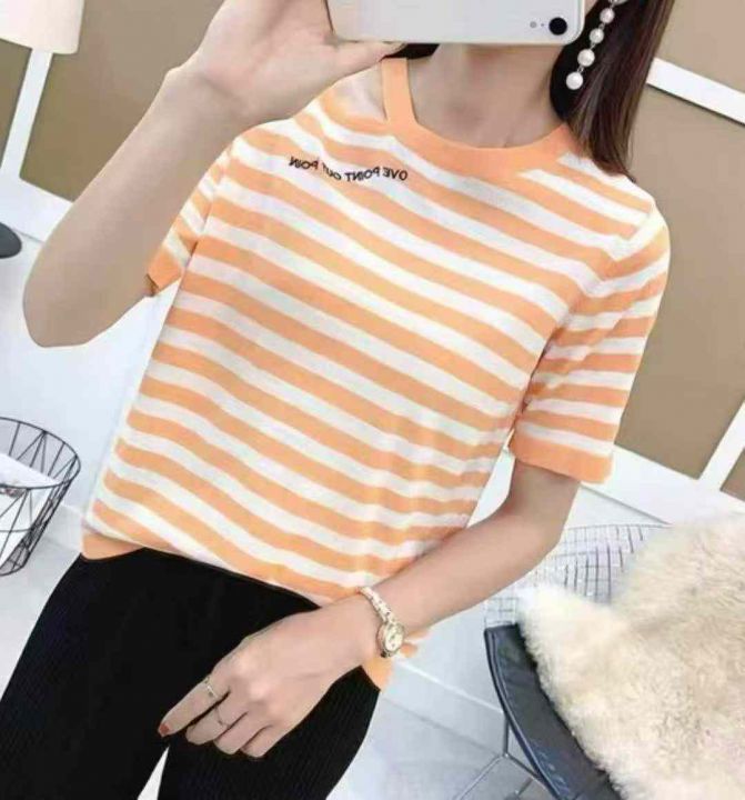 夏季新款韩系设计款收腰显瘦冰麻针织短袖,独立包装,...