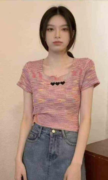 夏季新款撞色彩虹条纹刺绣针织短袖T桖,独立包装,均码面料柔软舒适弹力大,682件,全清5.9元超低价秒杀!分货加一!