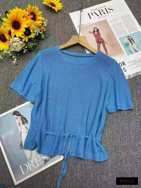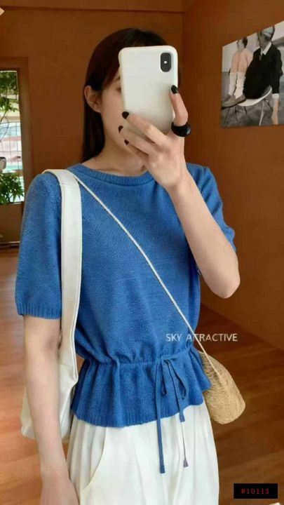 夏季新款韩系设计款收腰显瘦冰麻针织短袖,独立包装,均码面料柔软舒适宽松版,142件,全清5.9元超低价秒杀!@_@
