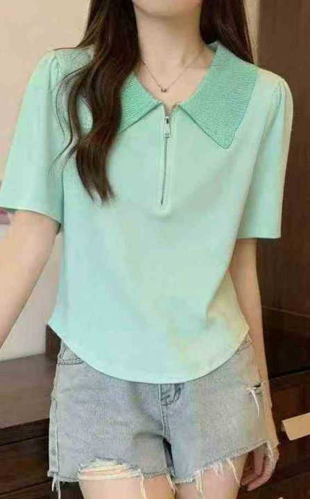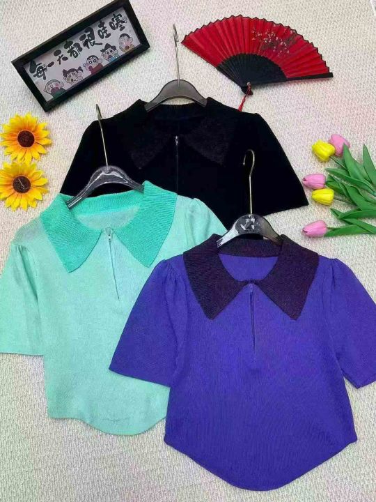 夏季新款韩系正肩POLO领撞色设计感拉链显瘦针织T桖,独立包装,均码年龄柔软舒适弹力大,1620件,全清6.9元超低价秒杀!分货加一!