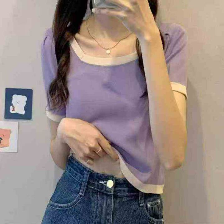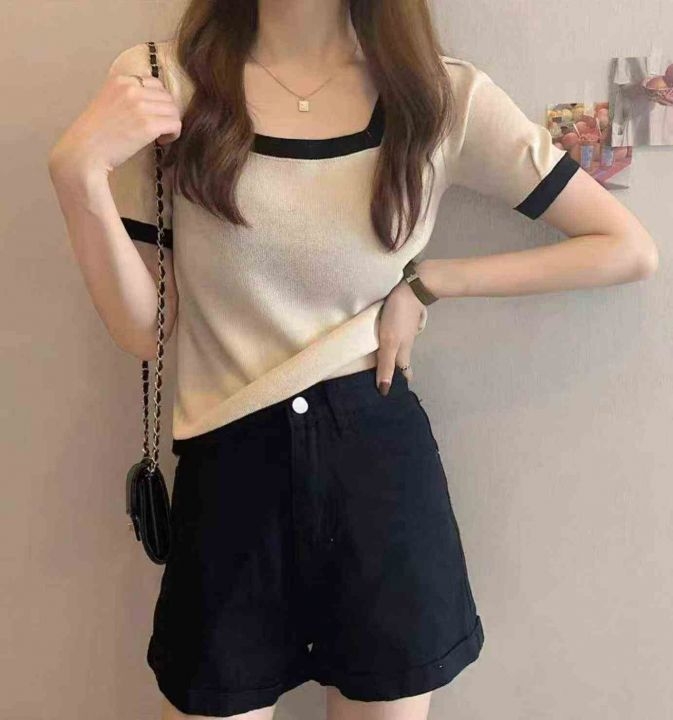 夏季新款大码宽松弹力显瘦方领冰丝针织短袖,独立包装,均码面料柔软舒适弹力,宽松版,单款4色米色黑色多,5300件,全清5.9元超低价秒杀!分货加一!