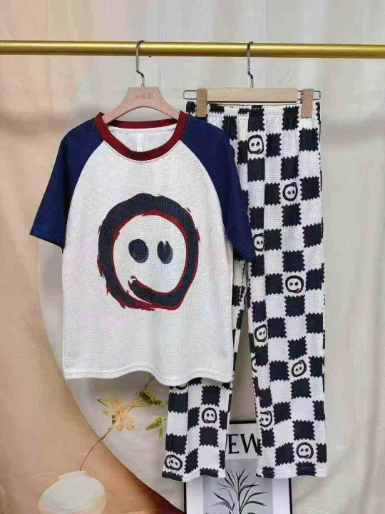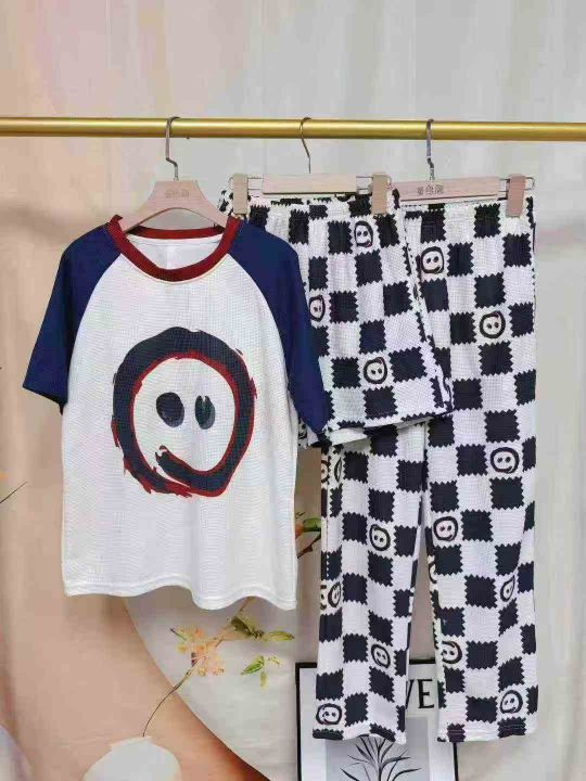 2025新款带胸垫华夫格家居服睡衣三件套,独立包装,数量200套,尺码M-2XL
