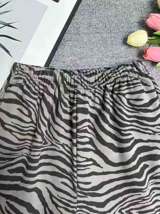 全清6.8分货+1秋冬季男女同款加绒斑马纹裤子直筒宽松...