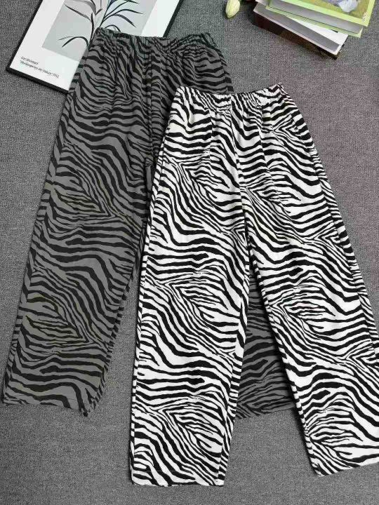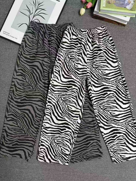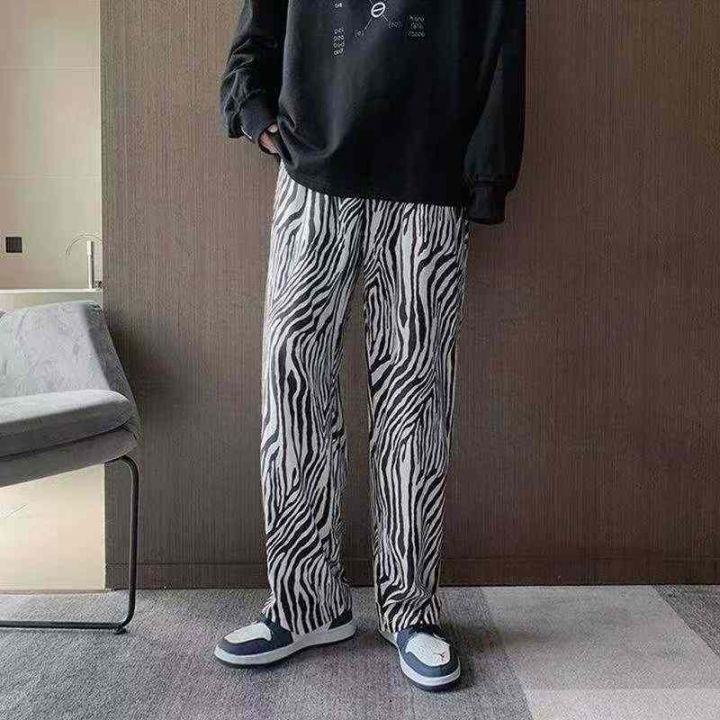 全清6.8分货+1秋冬季男女同款加绒斑马纹裤子直筒宽松...