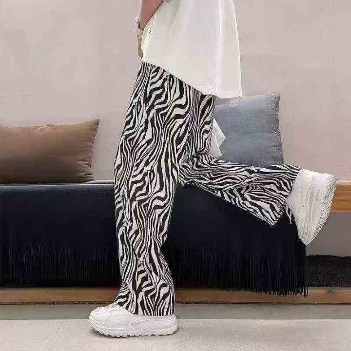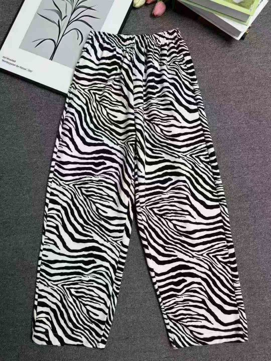 全清6.8分货+1秋冬季男女同款加绒斑马纹裤子直筒宽松...