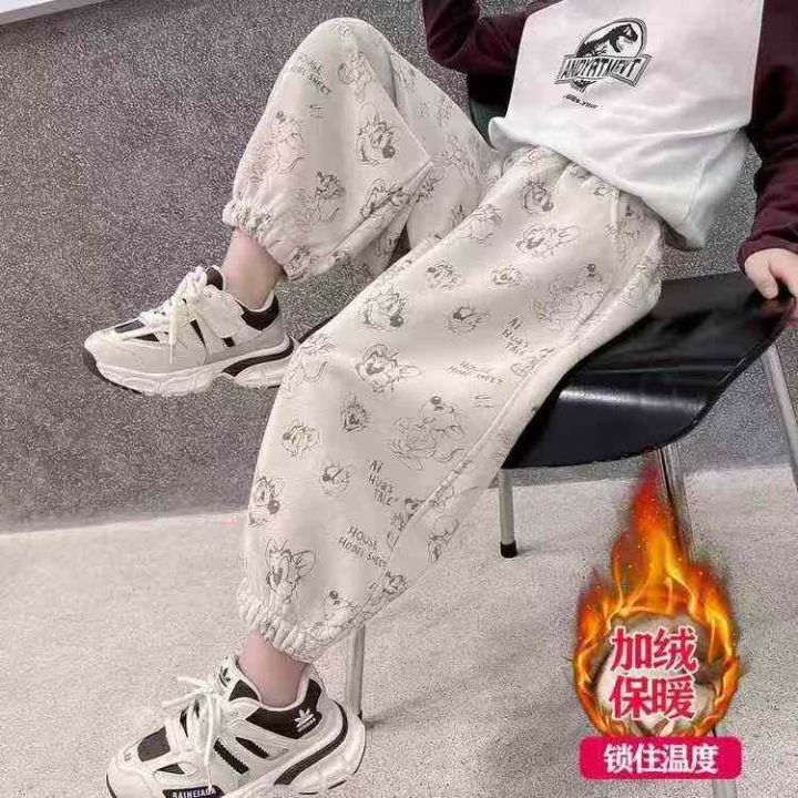 全清6.8分货+1秋冬季男女同款加绒斑马纹裤子直筒宽松...