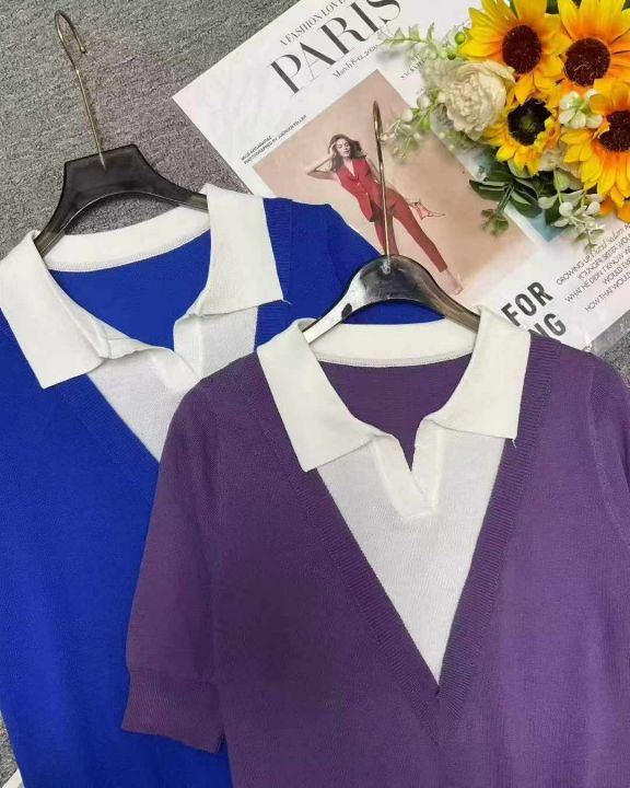 夏季新款宽松显瘦假两件冰丝针织衫,独立包装,均码面料软糯舒适,400件,全清6.9元超低价秒杀!分货加一!