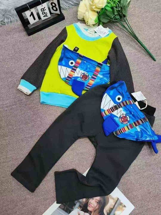 4.8清,810件日系童装春秋季毛圈圆领卫衣整款两色,裤子270条,可以自行配套,每件带有挎包,码数95-140,独立包装带吊牌。