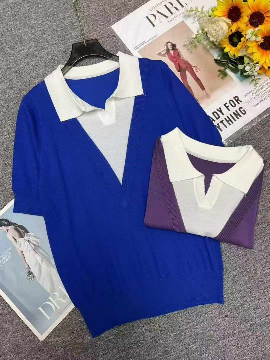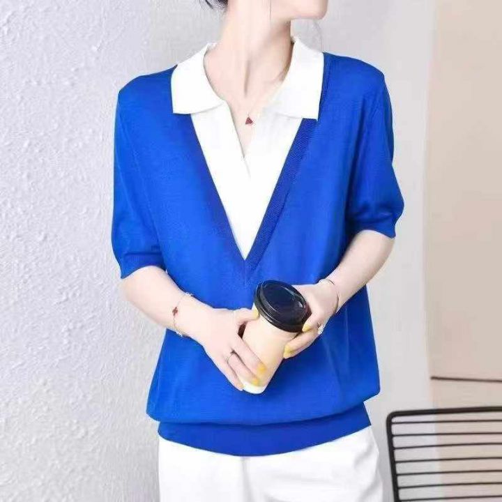 夏季新款宽松显瘦假两件冰丝针织衫,独立包装,均码面...