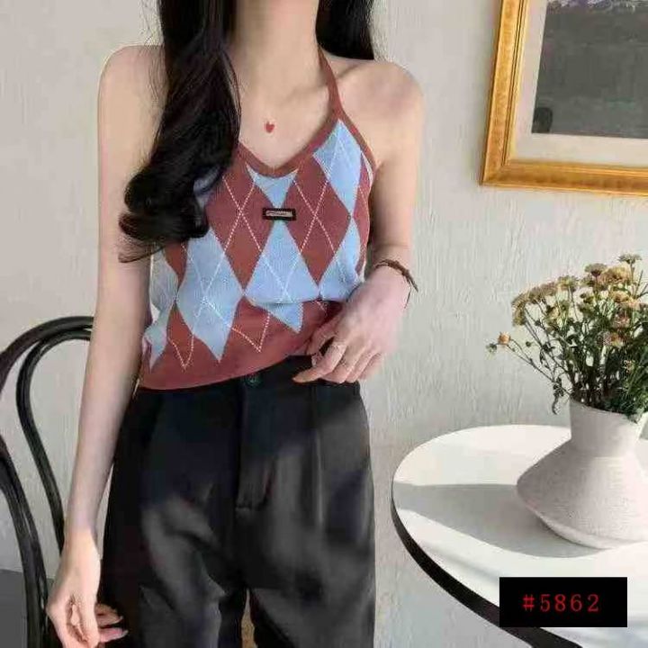 春夏新款复古菱格辣妹小标挂脖针织吊带背心独立包装,均码面料柔软舒适,647件,全清4.9元超低价秒杀!分货加一!@_@