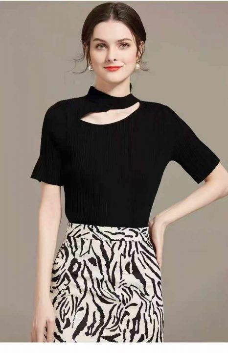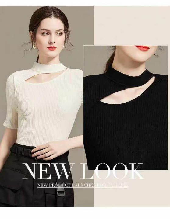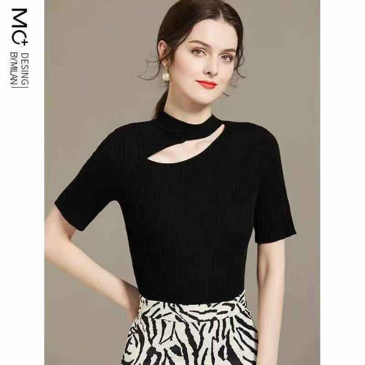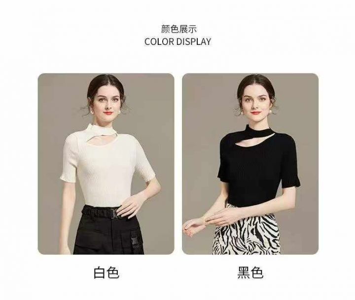 夏季新款时尚心机设计款冰丝短袖针织小衫,独立包装,...