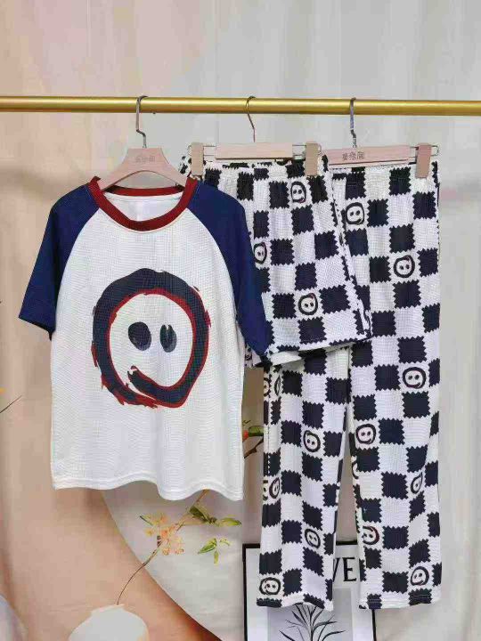 2025新款带胸垫华夫格家居服睡衣三件套,独立包装,数量200套,尺码M-2XL