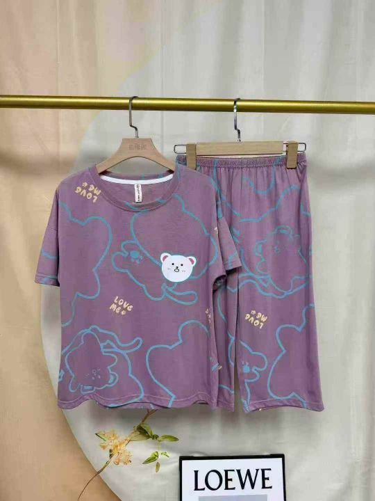 夏季女士薄款高级感三件套棉睡衣可外穿短袖短裤七分裤家居服,独立包装带吊牌,数量296套,尺码M-3XL