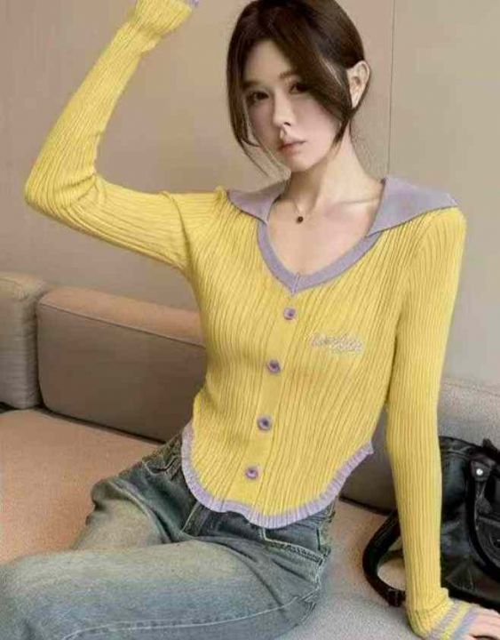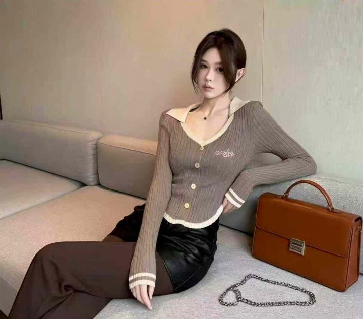 春秋新款辣妹性感纯欲风刺绣单排扣针织PoLo领套头毛衣,独立包装,均码面料柔软舒适弹力大,299件,全清6.9元超低价秒杀!分货加一!