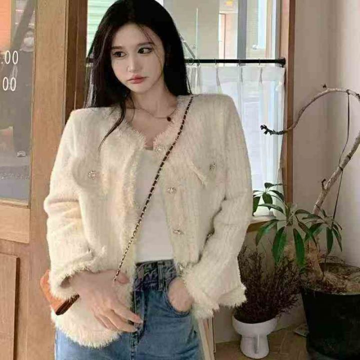 全清24.8元,2000件左右,春秋季新款宽松洋气小香风针织毛衣开衫仿水貂外套...