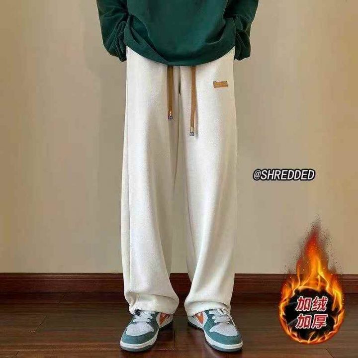 男士秋冬季加绒潮牌美式休闲运动裤男直筒拖地裤宽松阔腿长裤,独立包装,114件,尺码M-4XL