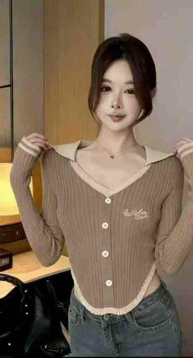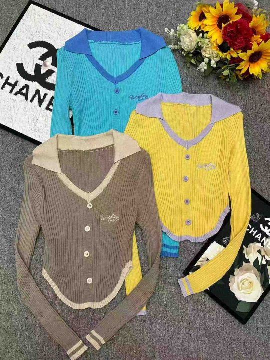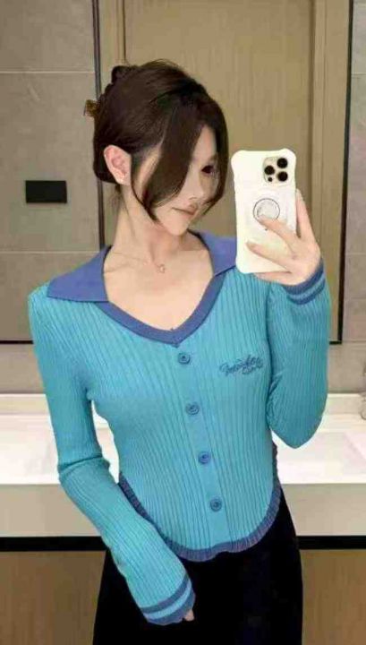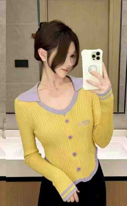 春秋新款辣妹性感纯欲风刺绣单排扣针织PoLo领套头毛衣,独立包装,均码面料柔软舒适弹力大,299件,全清6.9元超低价秒杀!分货加一!